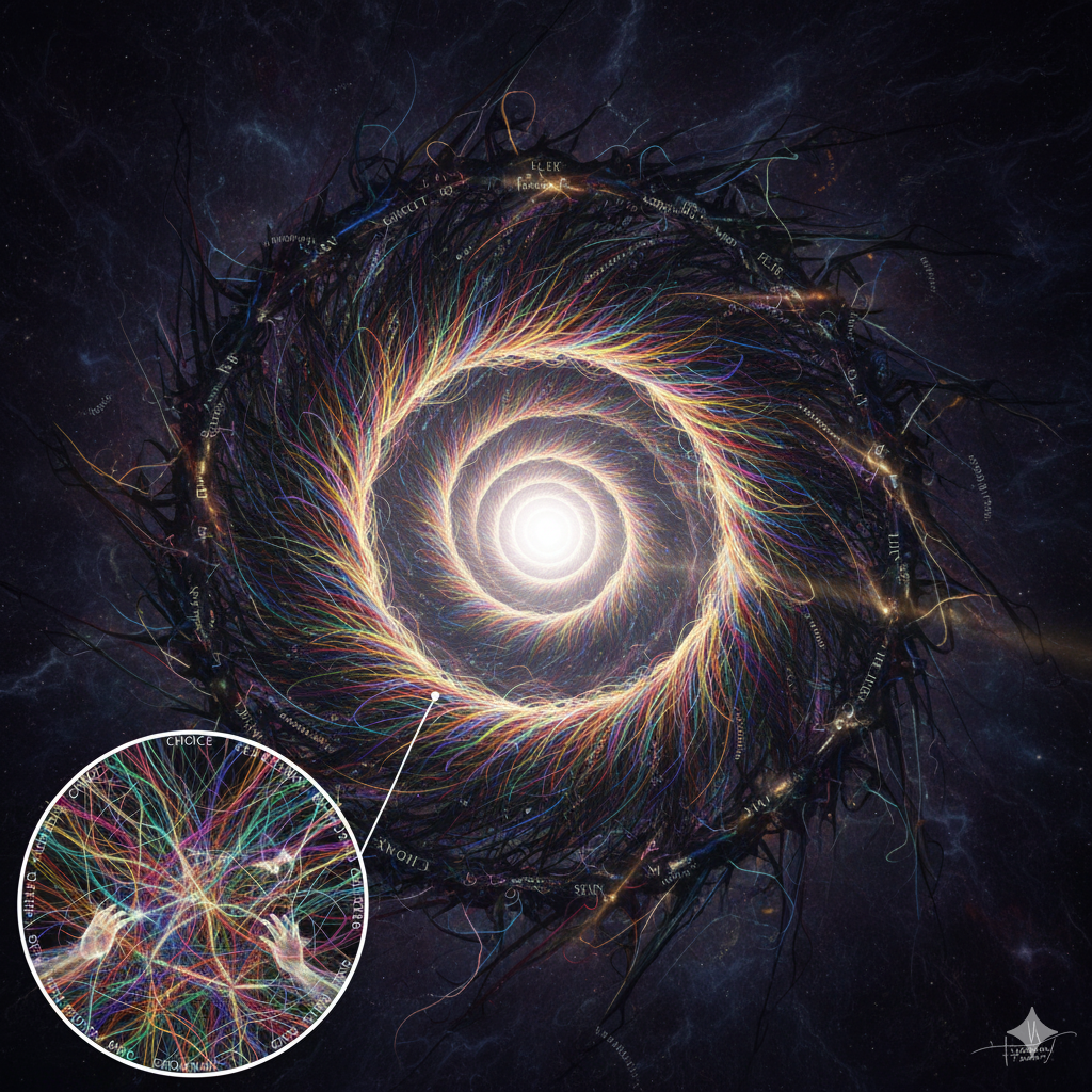 Si profundizamos en un fragmento de este hilo y lo examinamos con detalle, veremos que está compuesto de muchos hilos, con diferentes idiomas, energías, nawales, códigos y descripciones que lo componen. Como cualquier hilo real que usamos para la ropa en nuestras vidas, todos los hilos se componen de hilos más pequeños; todos los hilos son telas. Al observar con detalle, una tela puede parecer un desastre, y nuestra capacidad para comprenderlo es cómo nuestra percepción encuentra los diferentes hilos y el orden intrínseco de la tela, lo que nos lleva a una mejor comprensión de cómo el hilo compone la malla. Una descripción materialista del mundo, que debemos decir es el punto de partida de la descripción científica del mundo (donde ahora se extiende inevitablemente mucho más allá del materialismo), parte de una perspectiva espacial tridimensional —bastante natural— y parte de la premisa de que lo que podemos ver es lo que existe —la luz de las fuentes y la que rebota en las superficies— y que lo que soñamos, imaginamos y pensamos simplemente no es real; todo está en nuestra cabeza. Dado que todo este universo percibible no ocupa espacio, no puede ser reflejado ni medido por nada que lo ocupe, por lo que simplemente se tilda de «imaginario», sinónimo de «inexistente» o «no real». La ciencia real, en el sentido de «ser honesto», ha tenido que desprenderse de esto y empezar a postular teorías (y quedará para siempre relegada a las «teorías», ya que difícilmente encontrará maneras de «medir con una máquina» o «por terceros» lo que postula). Ser honesto difícilmente va a ninguna parte en un mundo (nuestra sociedad artificial) moldeado por las fuerzas de la deshonestidad. Seamos sinceros, no podemos vivir con una mentalidad exclusivamente espacial, ni con un universo definido, porque no lo somos. Necesitamos hablar de la luz y la oscuridad en un sentido metafórico y anclarnos en la dura realidad de que la metáfora lo es todo; lo literal es solo la superficie brillante.